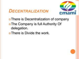 You can think of an organizational hierarchy as a pyramid. It consists of the right to make decisions and give orders concerning the production sales or finance related behaviour of subordinates. As a result of its centralized power structure authority is not generally delegated within the company.
